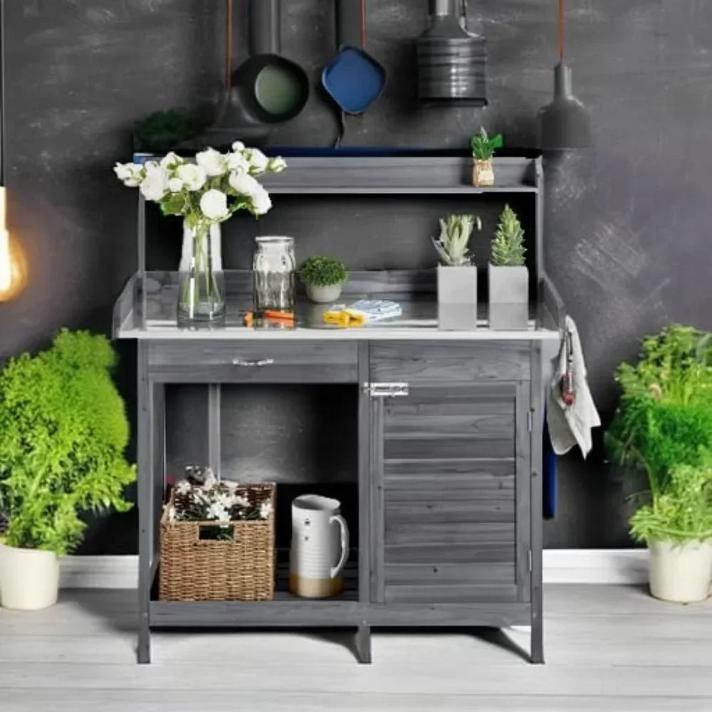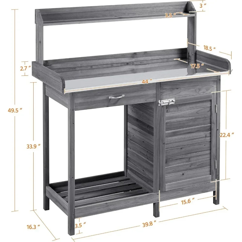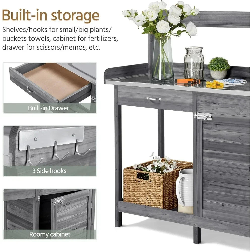 XMSJ Outdoor Potting Bench Table Garden Workstation With Hooks