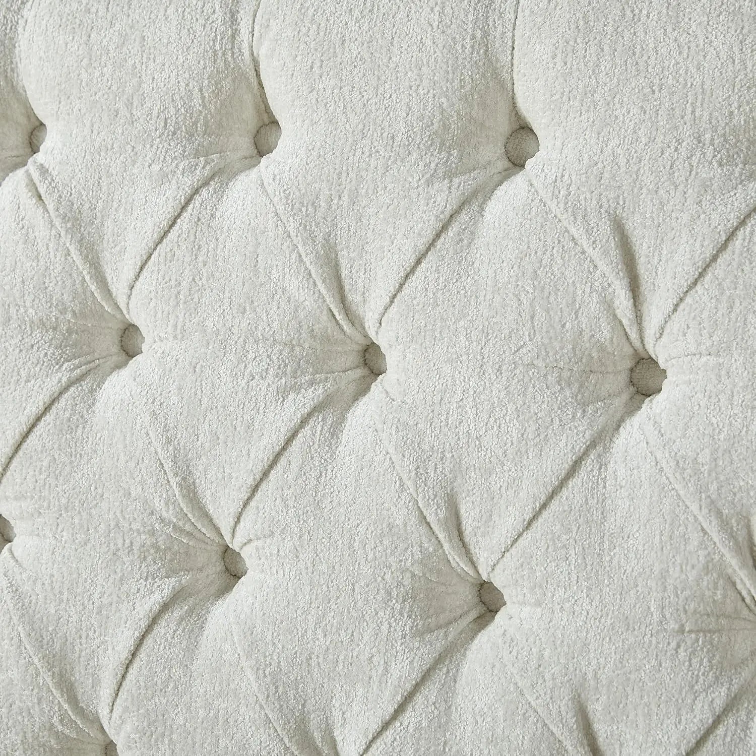 - You get artisan‑crafted upholstery: hand‑sewn chenille, generous padding, and button tufting on the scroll wingback headboard and matching footboard for a distinctive, refined look.
